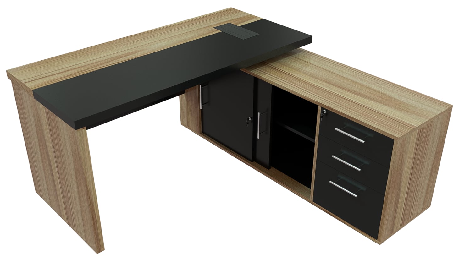 With integrated storage compartments, a sleek modesty front panel, and a smart cable management system, the result is a workstation that delivers both stability and refined professional aesthetics.